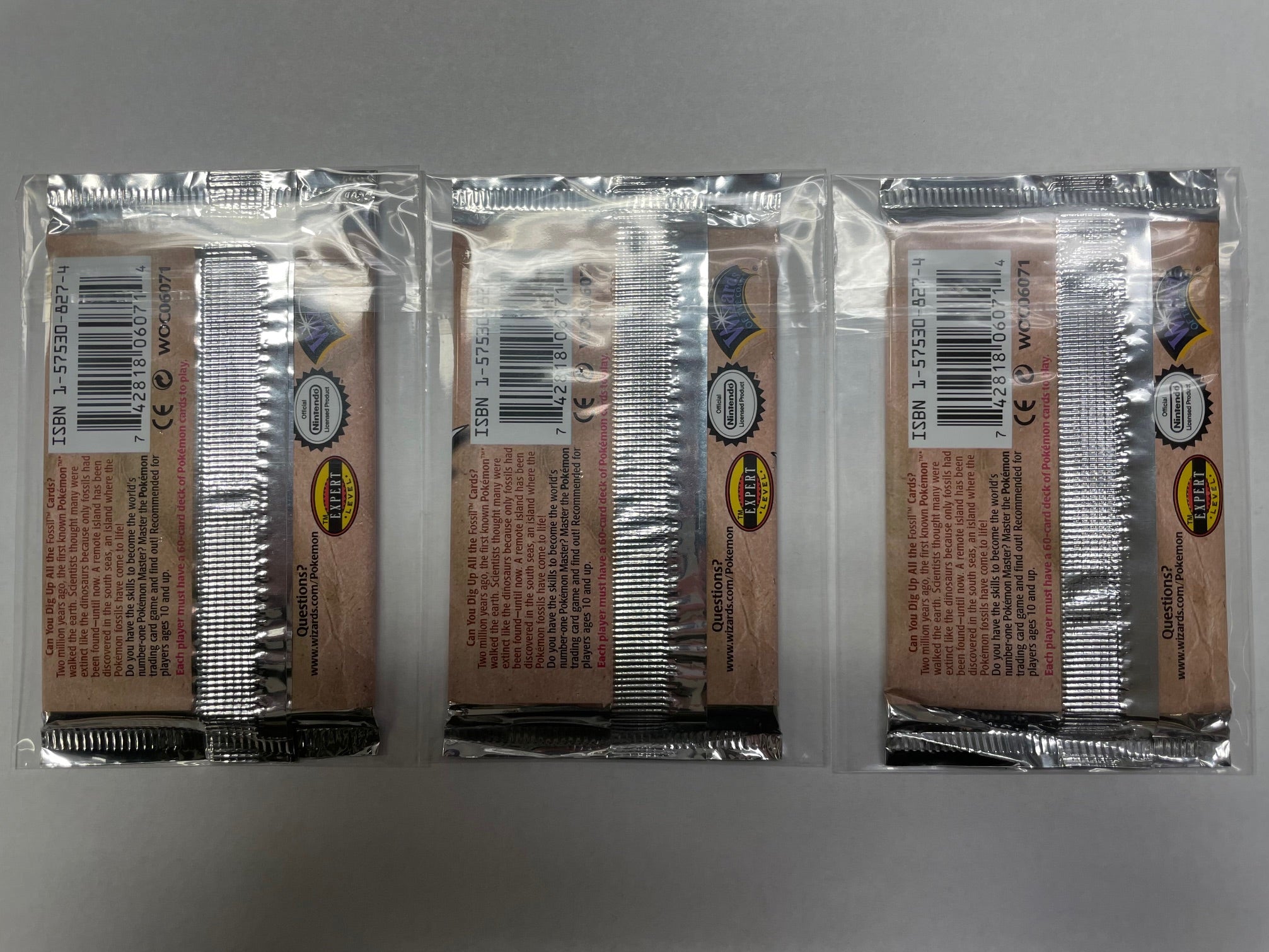This listing is for WOTC FOSSIL 1st EDITION ENGLISH art set booster (3 pack lot). You are bidding for a 3 pack lot, one of each art character (AERODACTYL, LAPRAS and ZAPDOS). This inventory is from our original inventory purchased 20+ years ago. These boosters come from a factory box of 36 packs. These packs have never been searched or weighed. Please refer to the pictures for reference. Item will ship in secure package.